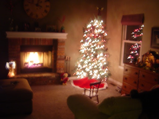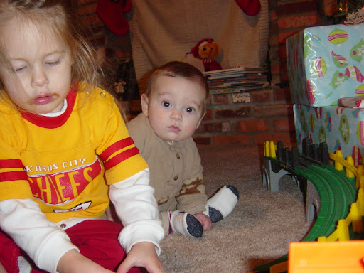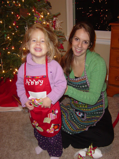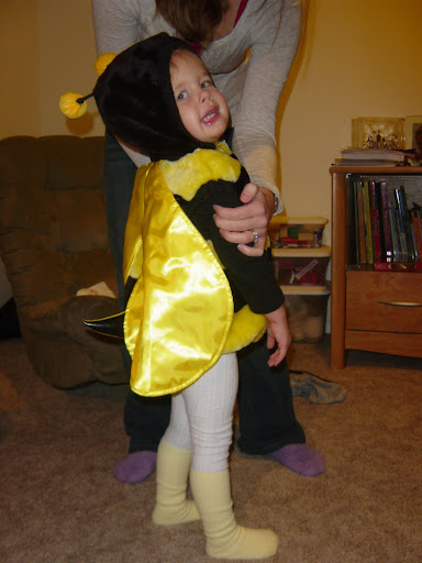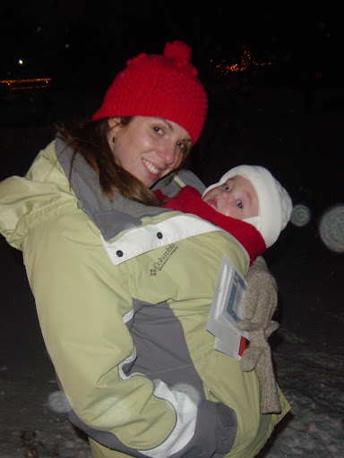 We got Luke dressed in his fuzzy blue suit. He looked pretty warm and cute. Abby was wearing her new pink winter jacket ... which apparently she hates. Just as we got her seated in the stroller and getting ready to go she started crying about her jacket rubbing her chin. It was like 7:10pm and it was already dark and cold. I think the temp was around 47.