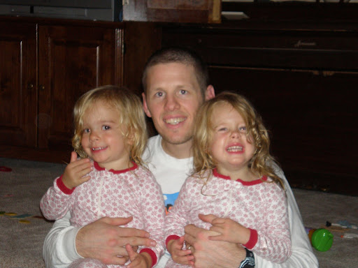 Hallie, Me and Abby. Hallie (her cousin) and Abby are in cute matching pajamas.