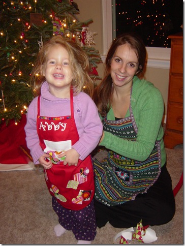 Abby opened one of her Christmas presents early ... a custom made apron from Mommy!!! She was thrilled, as you can tell by the look on her face (not being sarcastic).