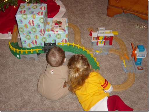I am trying to start a tradition of putting up some kind of train each year ... hopefully one that will go around the tree and among the presents. Abby and Luke thing it's a good idea.