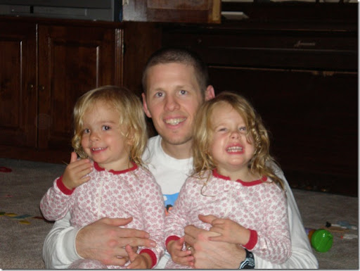 Hallie, Me and Abby. Hallie (her cousin) and Abby are in cute matching pajamas.